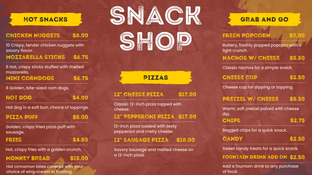 Enjoy all kinds of snacks and food from Zig-E’s Snack Shop!